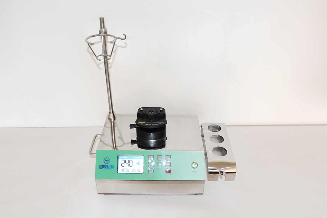 集菌儀的操作步驟:把儀器的蠕動泵柄和鉤松開,將培養(yǎng)器的軟管正確放入蠕動泵的定位槽